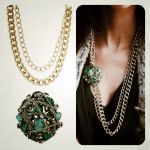 - La Coco Curb Necklace & After the Rain Brooch (Gold & Green), price of SGD$145. Shiny gold or silver plated brass and steel. Wear it three ways. 27 1/2″ total length. 19 3/4″ short necklace only. 8″ bracelet only. Can be worn long or detach bracelet and wear short.