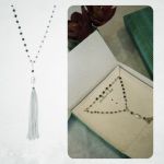 - Gitane Tassel Necklace. Price of SGD$127. Faceted metallic glass beads add sparkle to this timelessly chic rosary-style plated brass necklace in gold or silver. 121 cm in length, available in gold or silver. Can wear multiple ways with or without the S-hook.