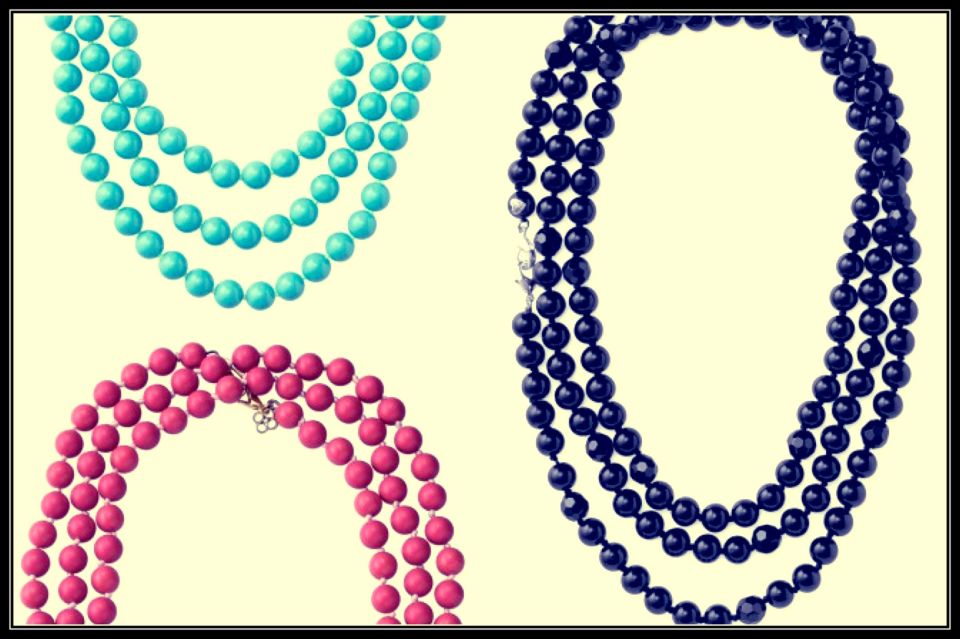 La Coco Rope Necklace. 152.4 cm in length, lead and nickel free. Hand-knotted colored beads or faux pearl. Price is SGD$112, you can choose in 3 colours.