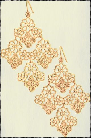 Chantilly Lace Chandelier Earrings. Glad plated filigree earrings were inspired by a piece of vintage lace. Gold vermeil earwire fish hook closure. Price of SGD$97.