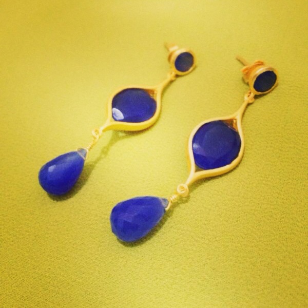 Blue chalcedony tier earrings, gold plated, from Ashlyne’s jewelry. SGD$72.