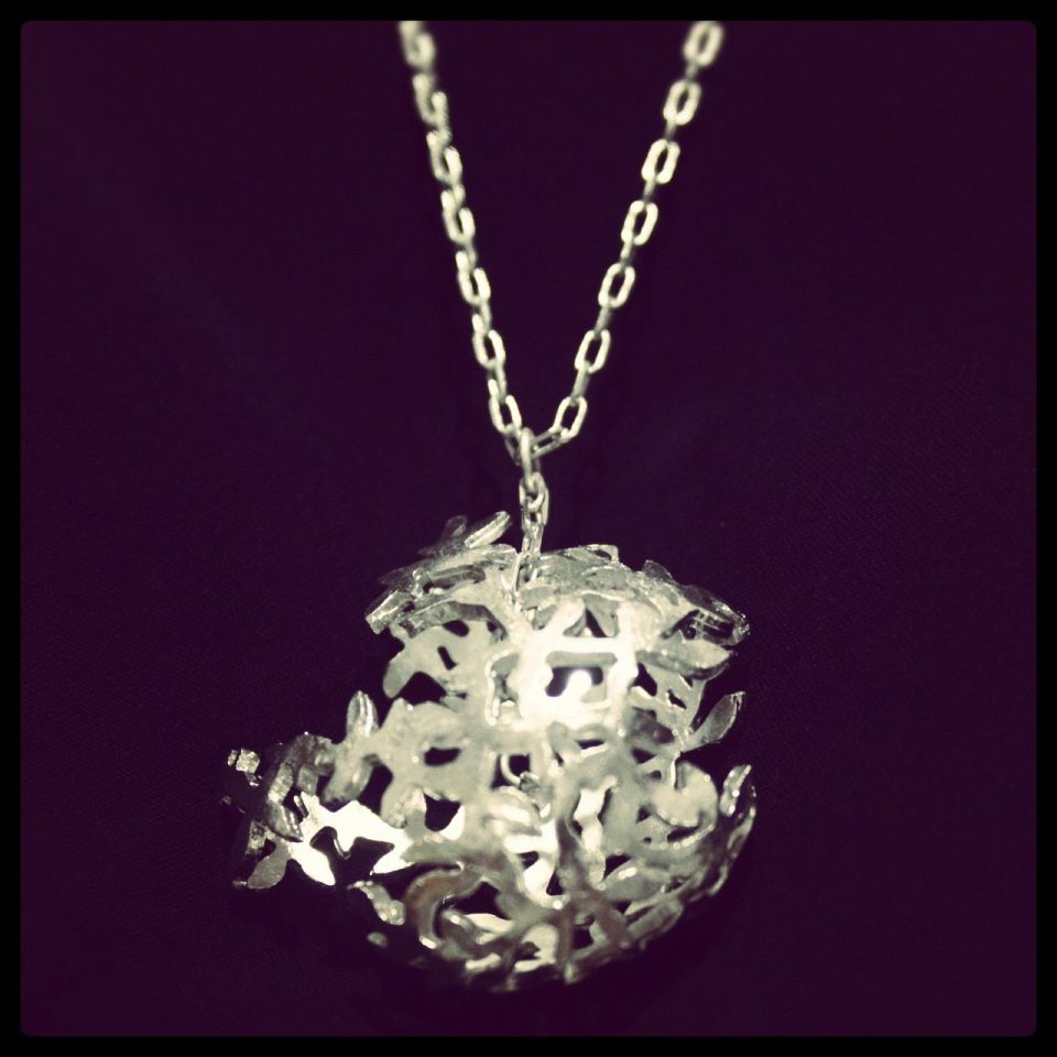 Silver Garden Necklace, Price of SGD$88. Long necklace, unique contemporary design, handmade on silver plated brass.