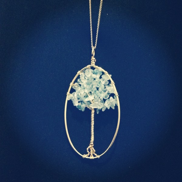 Wear a small fuschia tree. Long gold plated necklace, with soft fuschia celestine stones. SGD$70.